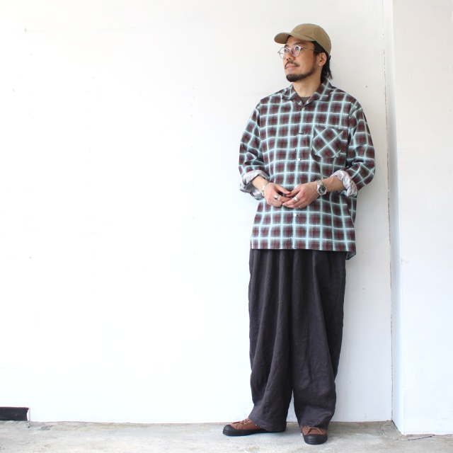 weac. プリントオンブレチェックオープンカラーシャツ RAINY BLUE (Blue Ombre-Check)