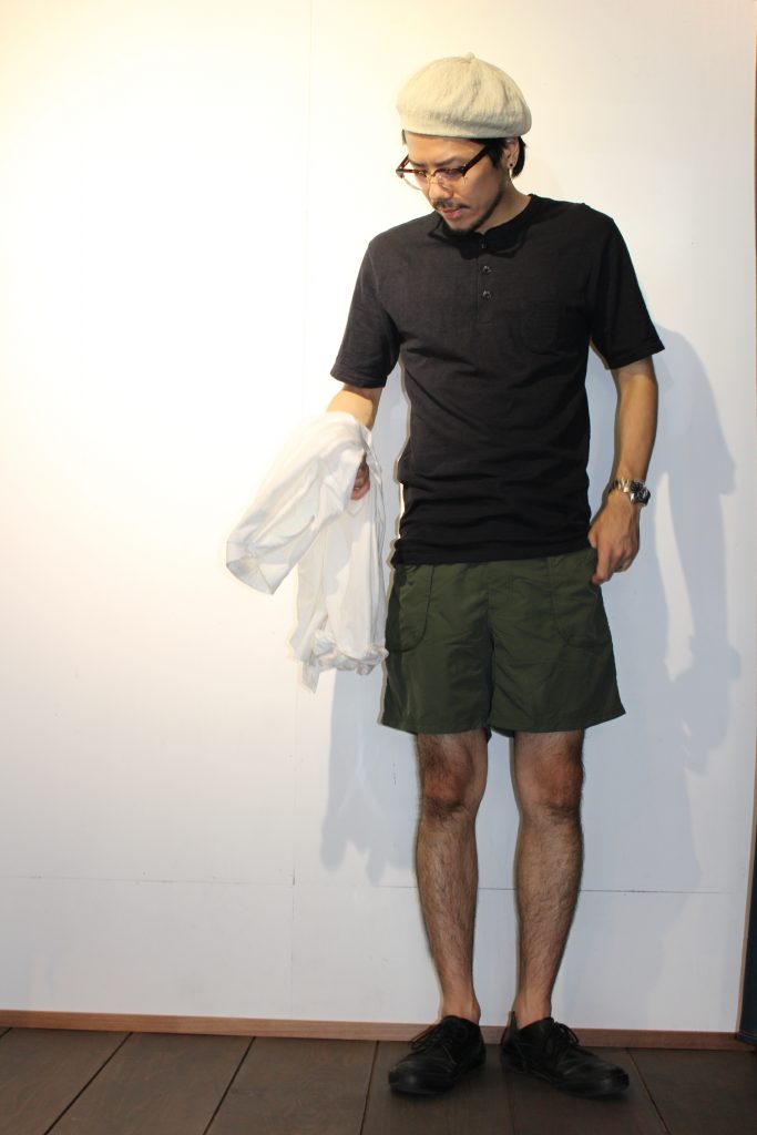 ORGEUILのヘンリーネックにTYGのワンポケットシャツ。