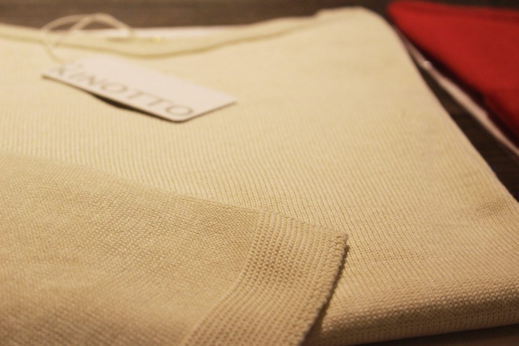 今回は、シンプルなカットソー、ニット、ソックス、ストールを展開。