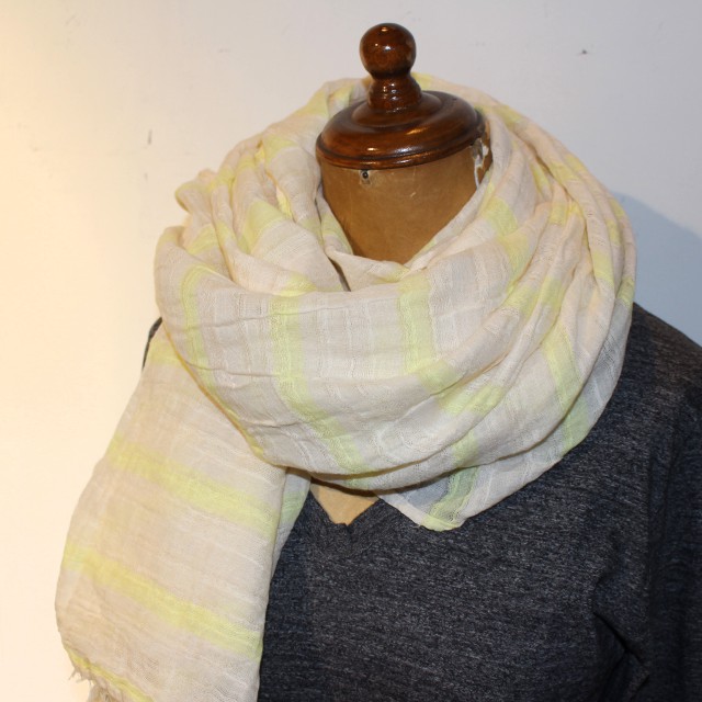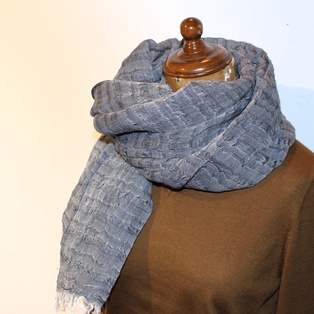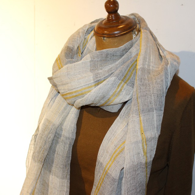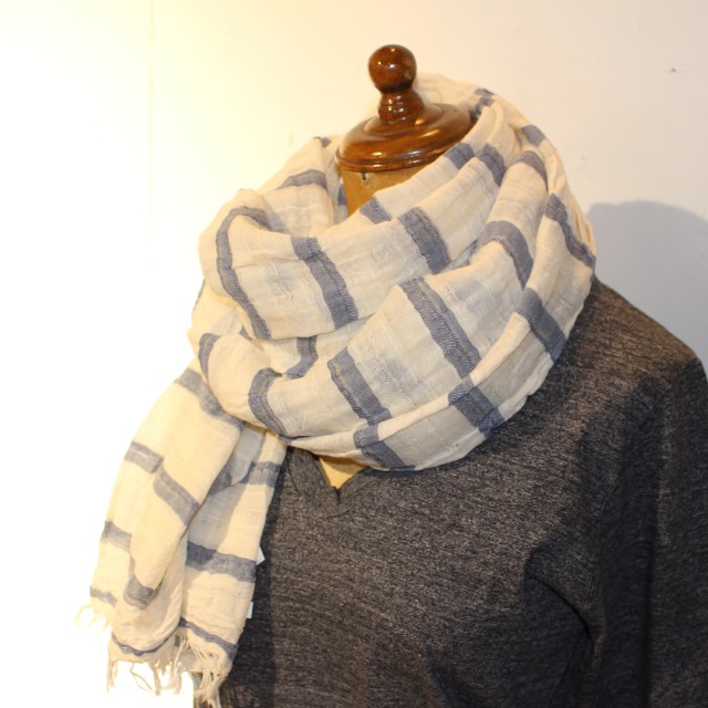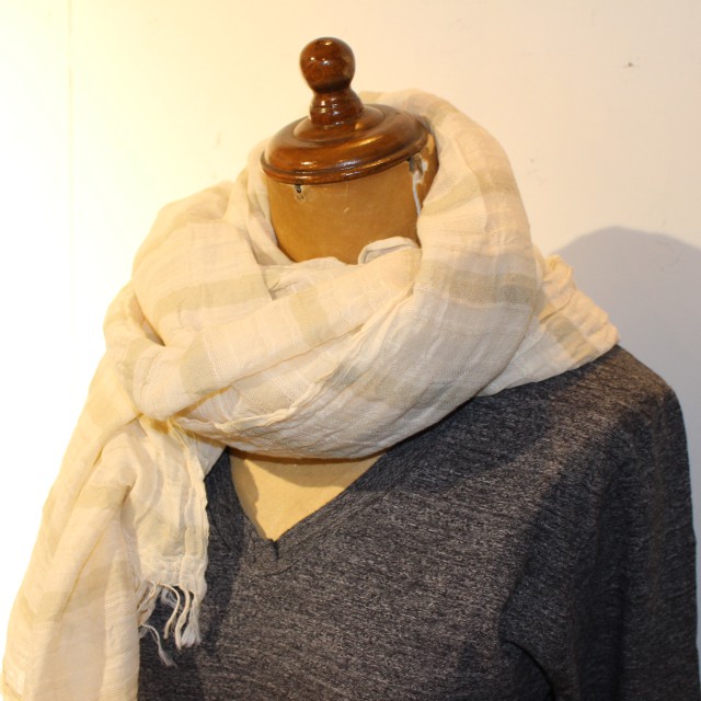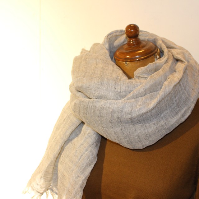 麻55%、綿45%のドライな肌触りで初夏まで巻けるストールです。