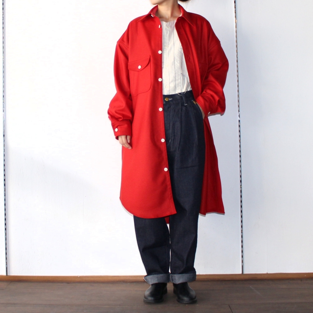 ■HAVERSACK ウールロングシャツコート Wool Long Shirts Coat 321711 (RED)