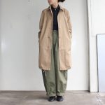 ベージュ×カーキのミリタリーを意識したレディーススタイリング。