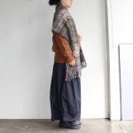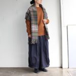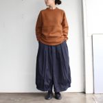 そんなTHE FACTORYのキャメルブラウンのカラーを引き立たせるには、ボトムにネイビーのサーカスキュロットを。