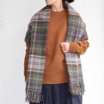 最後にウールの大判ストールの柄とレザーシューズの素材感で、冬らしいスタイリングに仕上げています。
