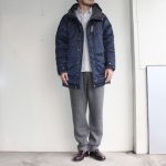 ミドル丈のコートに適度なテーパードが特徴のボトムを合わせることで