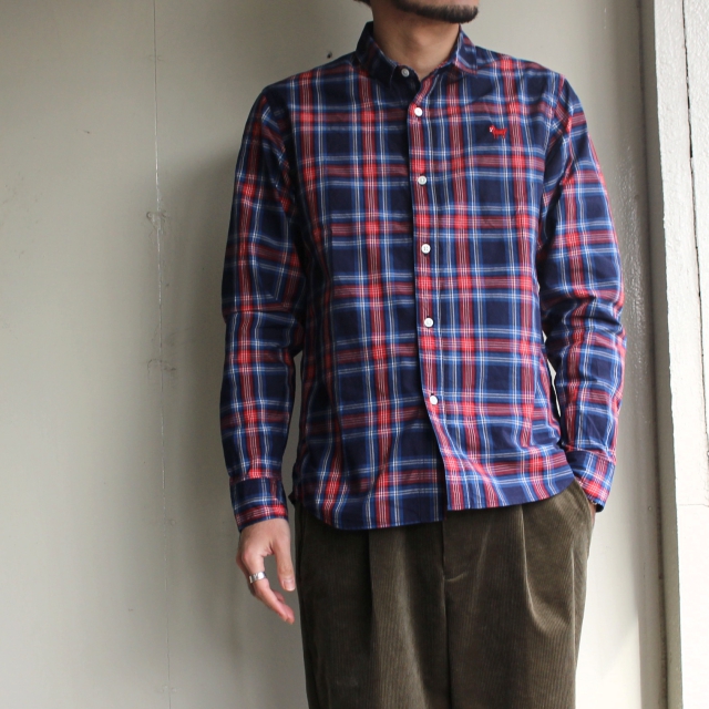 ■ weac. パグチェックシャツ PUGCHAN (NAVY×RED)