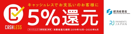 対象店舗にてキャッシュレス決済でお支払いするとポイント還元が受けられる国の制度です。