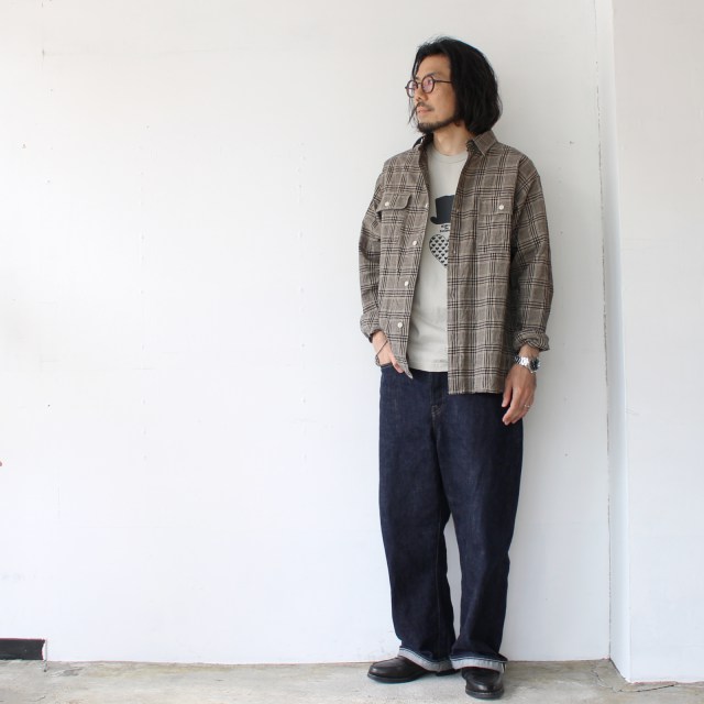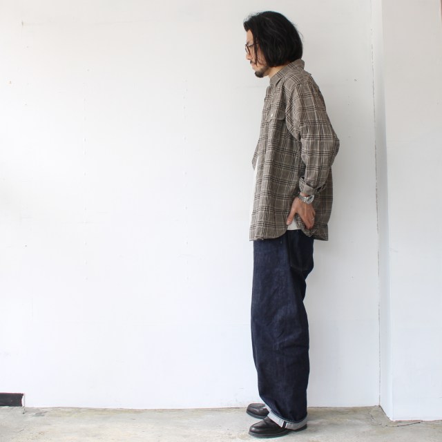 ■ ■ another 20th century コットンリネンチェックワークシャツ Walter’s Corn-Venti C/L Check (Beige × Black Check)