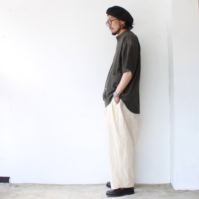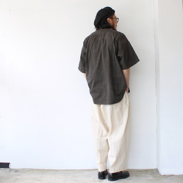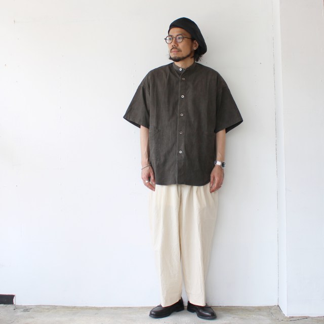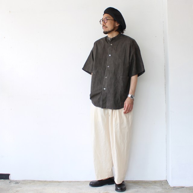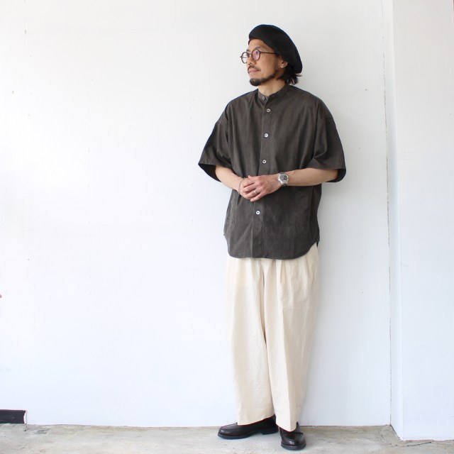 ■ HAVERSACK 墨染めタイプライターバンドカラーシャツ Mud-ink dyed typewriter bandcollar shirt