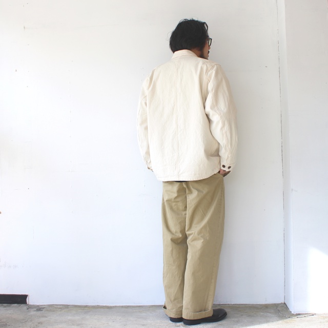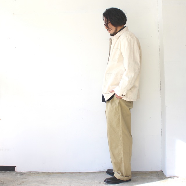 ■ ワイドチノトラウザー Old Yankees-Bio wash 【BRAND】 another 20th century / アナザートゥエンティースセンチュリー 【COLOR】 Beige another 20th centuryより定番トラウザー「Yankees」 ブランド初期から展開している人気のワイドシルエットトラウザー。 今期はその定番が久しぶりに登場です。 今回はチノ素材の生地をバイオウォッシュ仕上げたタイプ。 加工による着古したような色み・かすれ具合がヴィンテージのような佇まいに。 フロントはUNIVERSAL社のロック式ジッパ…