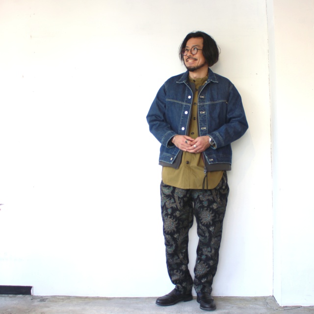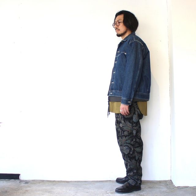 ■ ペイズリーイージーパンツ RELAX PANTS – Paisley 【BRAND】 weac. / ウィーク 【COLOR】 Black weac.よりペイズリーイージーパンツ。 weac.定番のイージーパンツ「RELAX PANTS」から、今季はこちら。 ゴブラン織りのようなペイズリー生地。 肉厚で真冬も安心ですが、ポリエステル素材で織り上げることで、硬さを軽減し、滑らかな肌触りで穿ける生地。 シルエットは太ももは太めで、裾にかけて綺麗なテーパード。 裾は好みで折り返して穿いてもOK。 無地のカットソーやシャツ、冬は…
