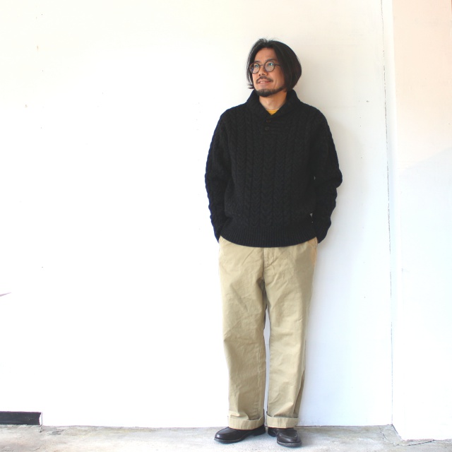■ アランショールニット Aran Sweater / OR-9108 【BRAND】 Orgueil / オルゲイユ 【COLOR】 Black Orgueilより「Aran Sweater」 アイルランド諸島で生まれた伝統的な漁師用の防寒衣料が起源のアランニット。 上質で厚手のケーブル編みニット生地に、ショールカラー、ボタンはナットボタンを使用。 肩回りはややゆとりを持たせ動きやすく、裾はリブ仕様でフィット感を高めた綺麗なシルエットです。 シャツとのレイヤードでメインとして着るのはもちろん ジャケット・コート・ベスト等の…