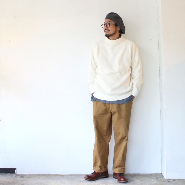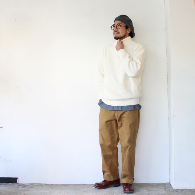 ■ 裏起毛畦編みハイネックコットンニット Brushed rib stitch high collar knit 【BRAND】 siora / シオラ 【COLOR】 Off white Sioraより「裏起毛畦編みハイネックコットンニット」 畦編みのミドルゲージニットです。 ハイネックデザインで、一折してモックネックのようにしても着用可能。 上質な綿100%を使用し、肌触りはチクチクせず、スウェットの延長のようなイメージでも楽しめます。 適度なゆるさのあるシルエットが絶妙なニュアンスを生み出してくれるとてもniceな…