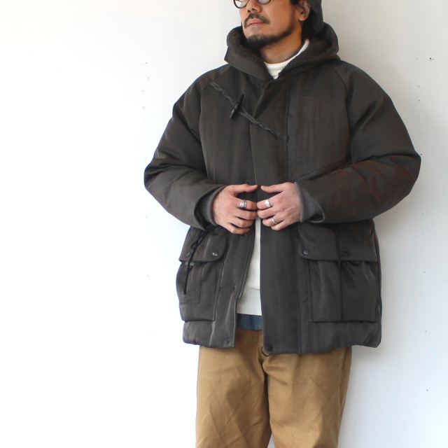 ■ 3WAYフーデッドダウンジャケット3Way Hooded Down Jacket 【BRAND】 norbit by hiroshi nozawa / ノービット 【COLOR】 Gray norbitより「3Way Hooded Down Jacket」 表地に強度高い光沢ツイル生地を使用したクラシックなイメージのダウンジャケット。 セーラーカラー、スタンドカラー、フードと3通りの形状に変化でき、天候に合わせて使い分けができる多機能フード。 フロントオープン時に着脱防止に便利なトグルボタン、クロス付のウエストスピンドル、サスペンダーなど実用的なギ…