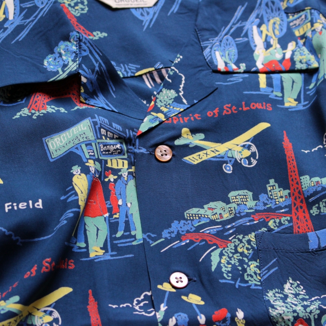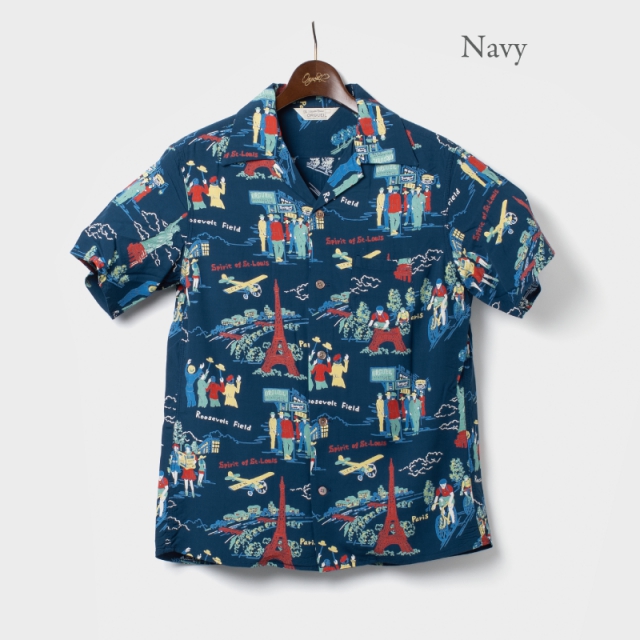 チャールズ・リンドバーグによる大西洋単独無着陸飛行をモチーフに製作されたアロハシャツ。