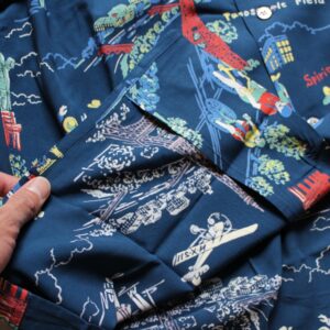フランスとアメリカを舞台にしたオルゲイユならではのアロハシャツです。