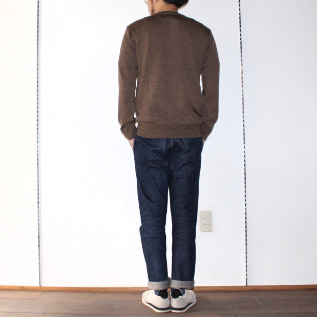 そしてスウェットを思わせる首元のV、袖と裾のリブ編みなど細かいディテールもポイントです。