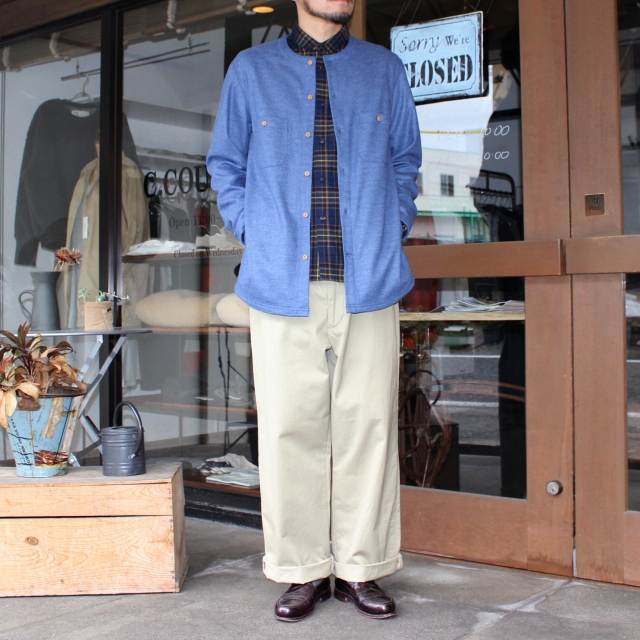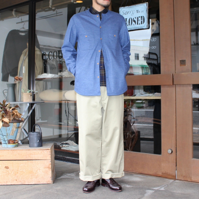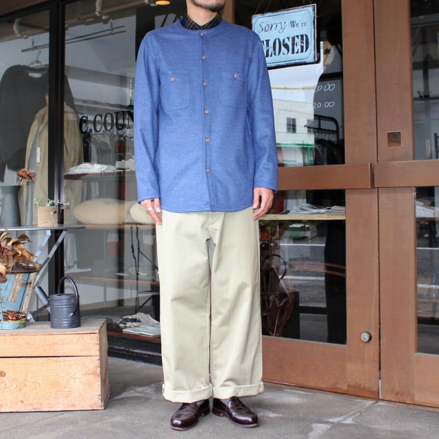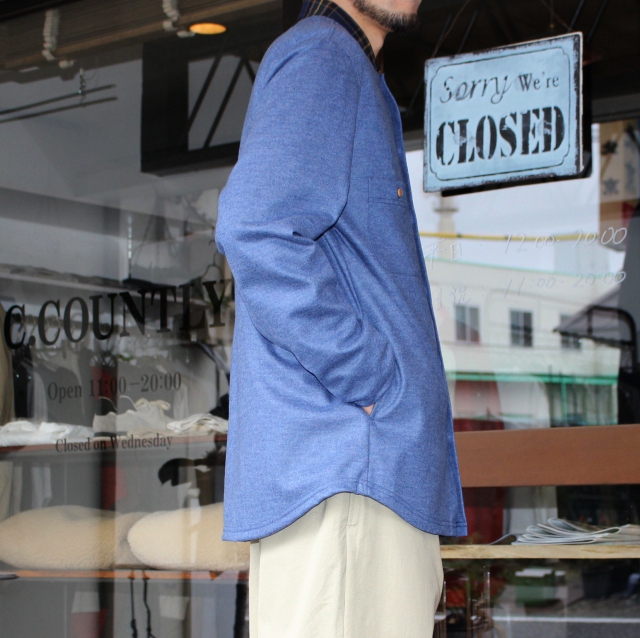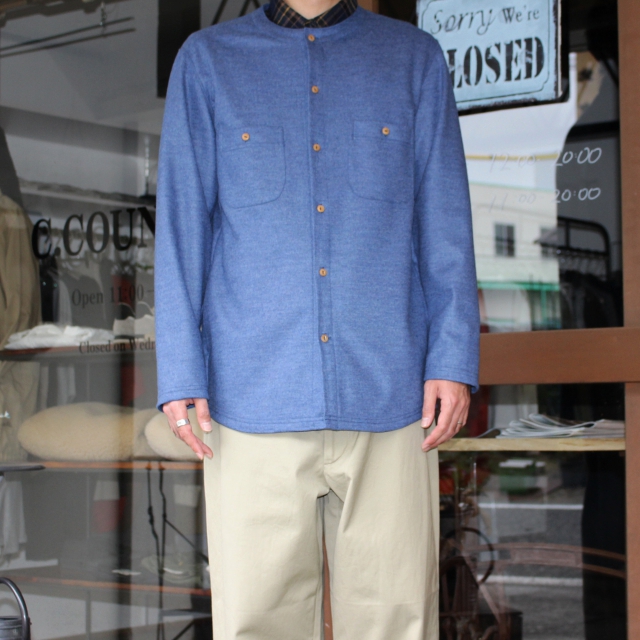 MOSODELIA ウールノーカラーシャツ Collarless Shirts 17AW-S-002 (BLUE)