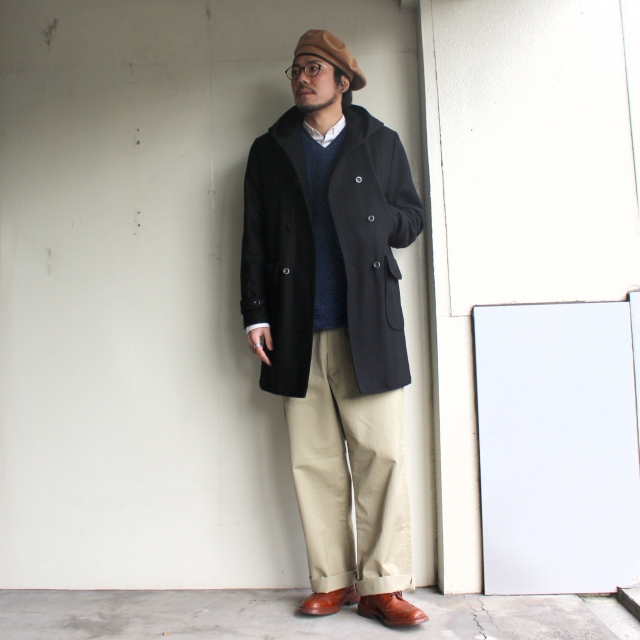 生地にはライトメルトンを使用したやや軽めの着心地ですが、目の詰まったウールなのでしっかり真冬でも暖かく着られます。