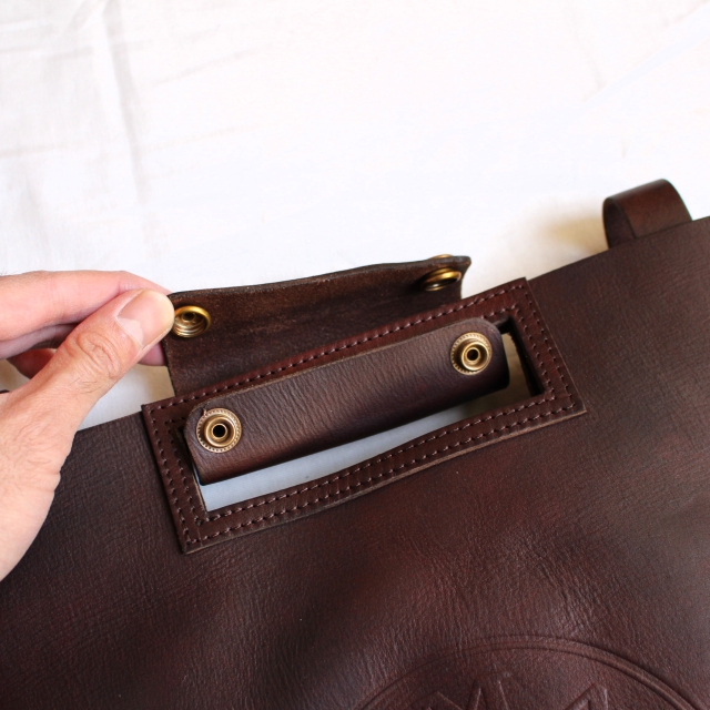 レザーストラップでフレームにアタッチメントでき、ストラップを取り外すことでハンドバッグにもなります。