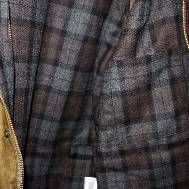 コート本体は、ライナーベストを外してもウールのチェックの裏地が付いていますのでそのままでも大丈夫。