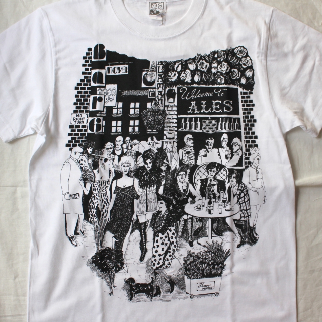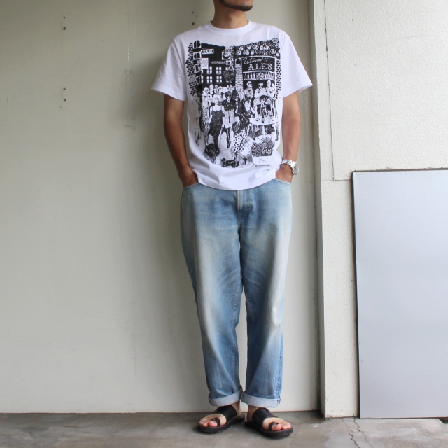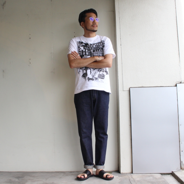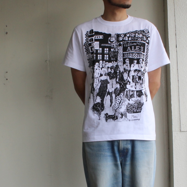 ワタナベサキによるハンドドローイングでデザインされたTシャツ。