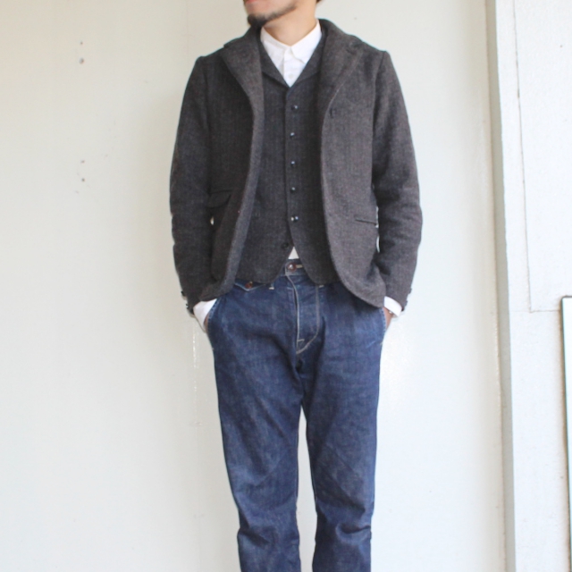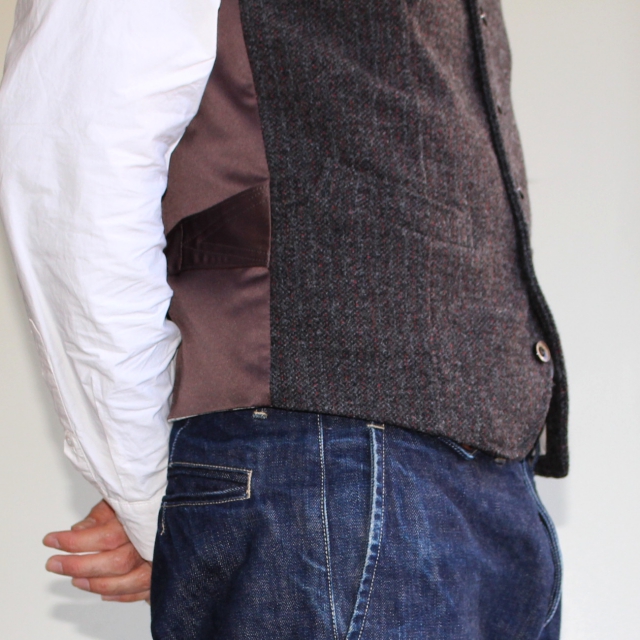 クラシカルなディティールはそのままにタイトですっきりとしたカッティングに仕立てたベストです。