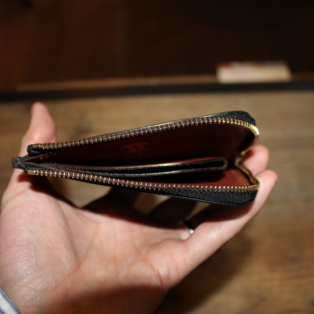 レザーは世界随一のクオリティを誇る、イタリアはトスカーナ地方のタンナー「ヴォルピコンセリア社」製のオイルレザー「トイアーノ」を使用した、L字ファスナーミニウォレットです。