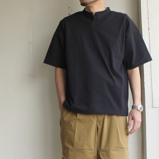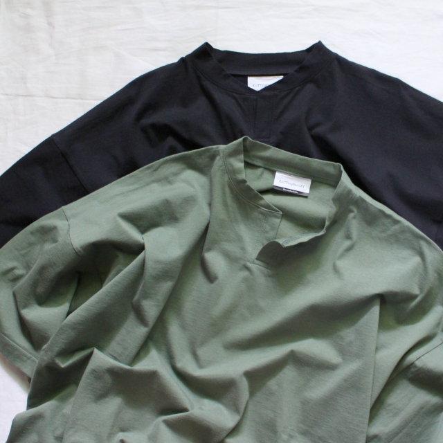 Knitting Factoryより、スリットネックのワイドシルエットTシャツ。