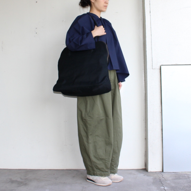 僅かに光沢感も感じられる繊細な表情でありながら、気軽に使えるコットン素材の便利なバッグです。