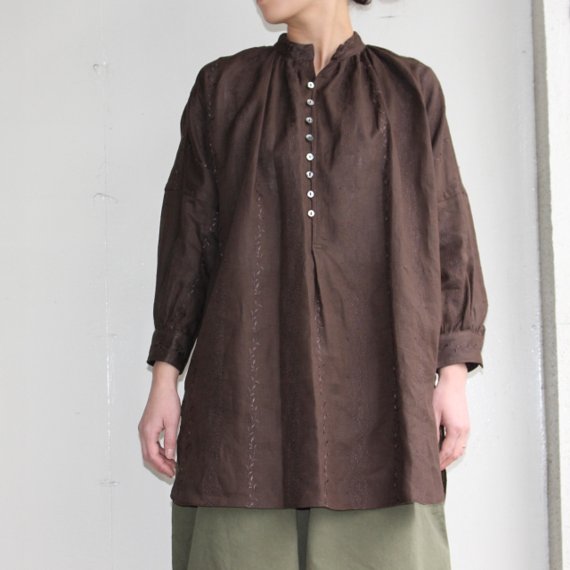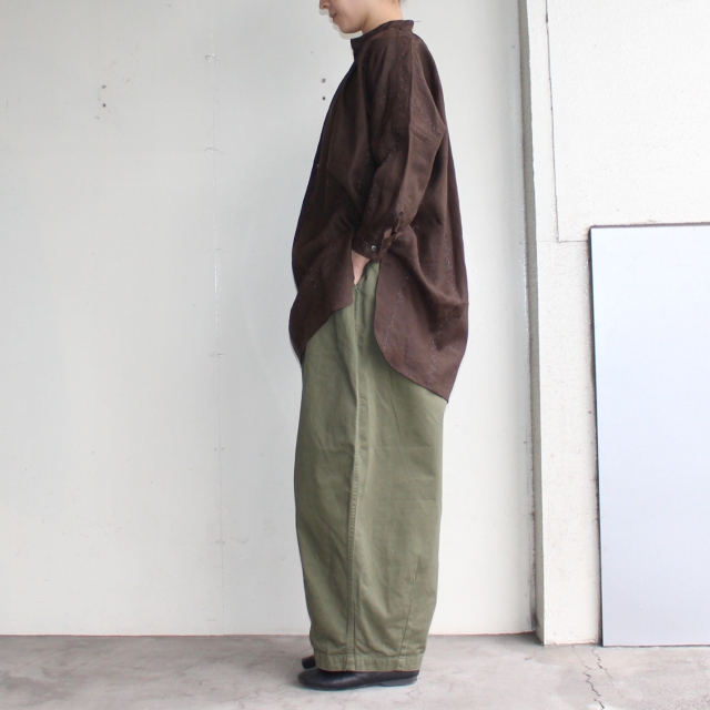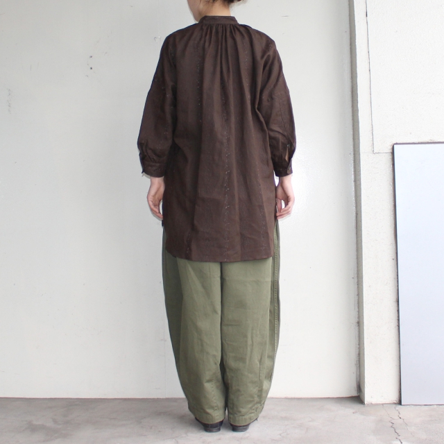 シルエットはゆったりで、麻100%の軽い着心地が魅力です。