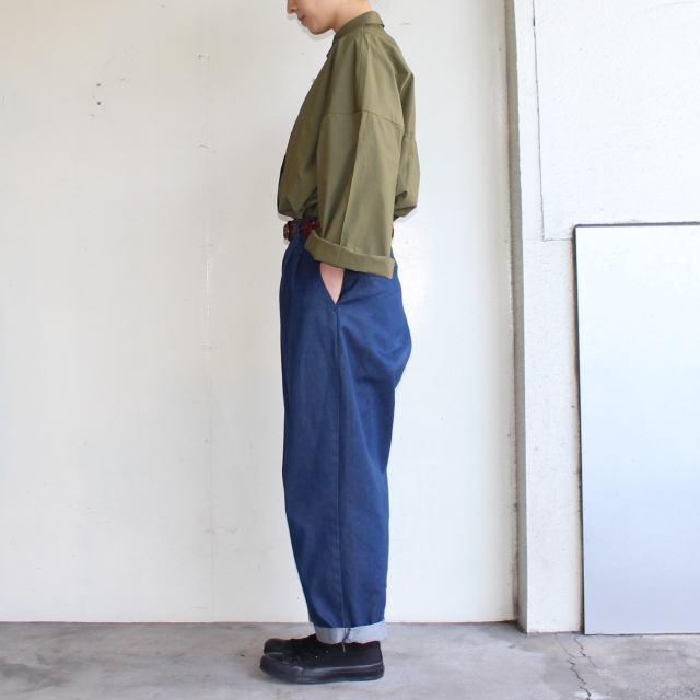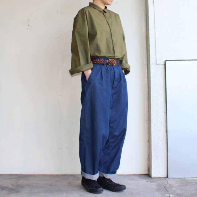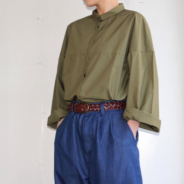 襟を大きめに開いたり、袖を一折してラフな印象にして着るのもかっこいいシャツです。