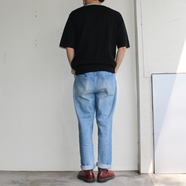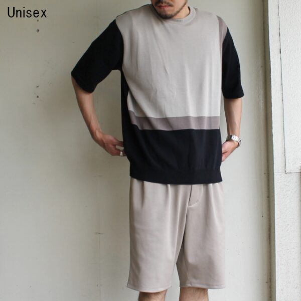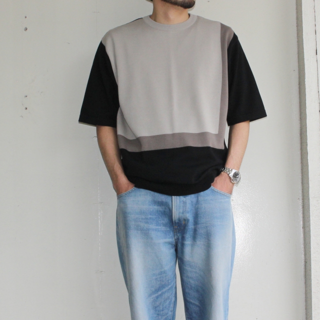 同系配色のコントラストがとてもきれいな半袖ニット。