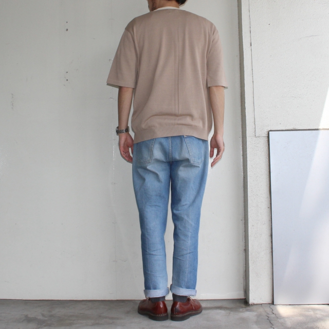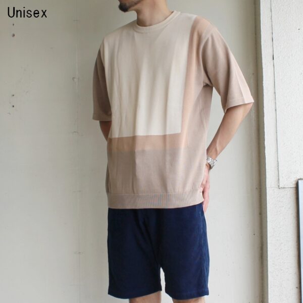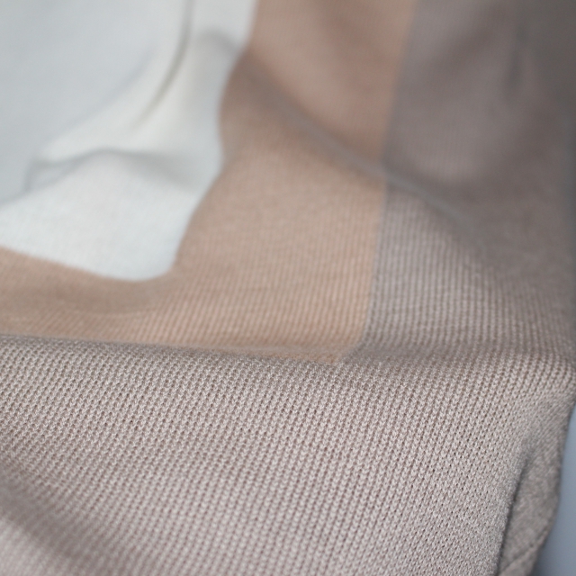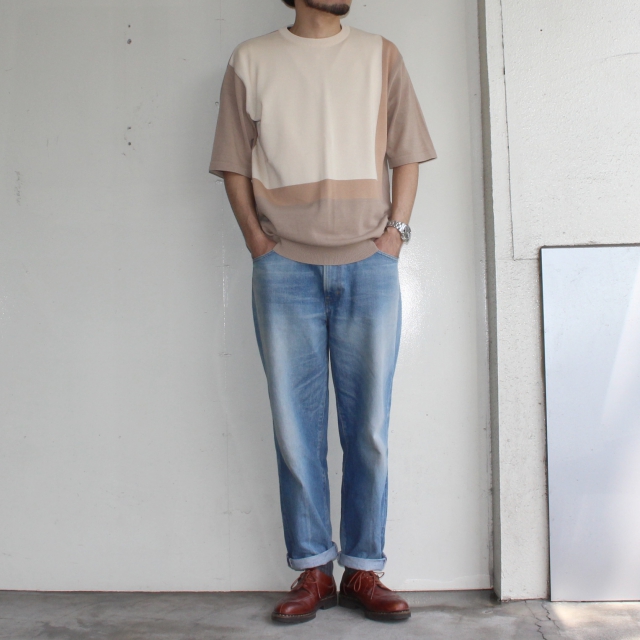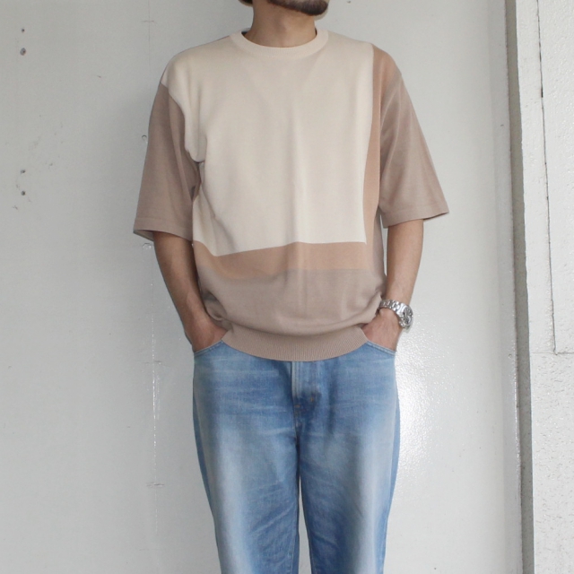 同系配色のコントラストがとてもきれいな半袖ニット。