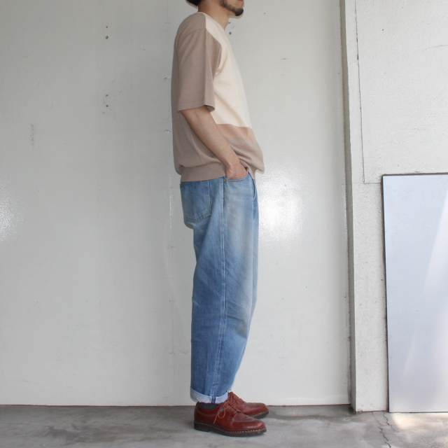 weacより配色切り替えが特徴のカラー半袖ニットです。