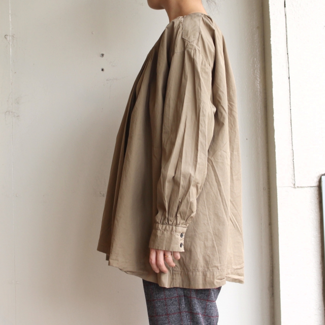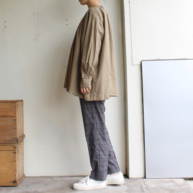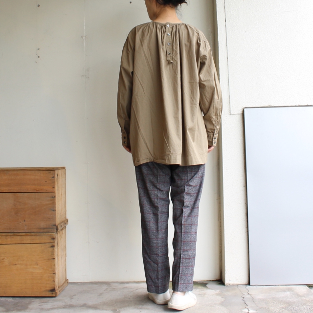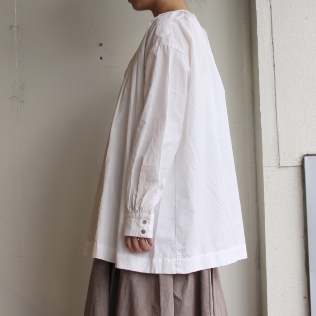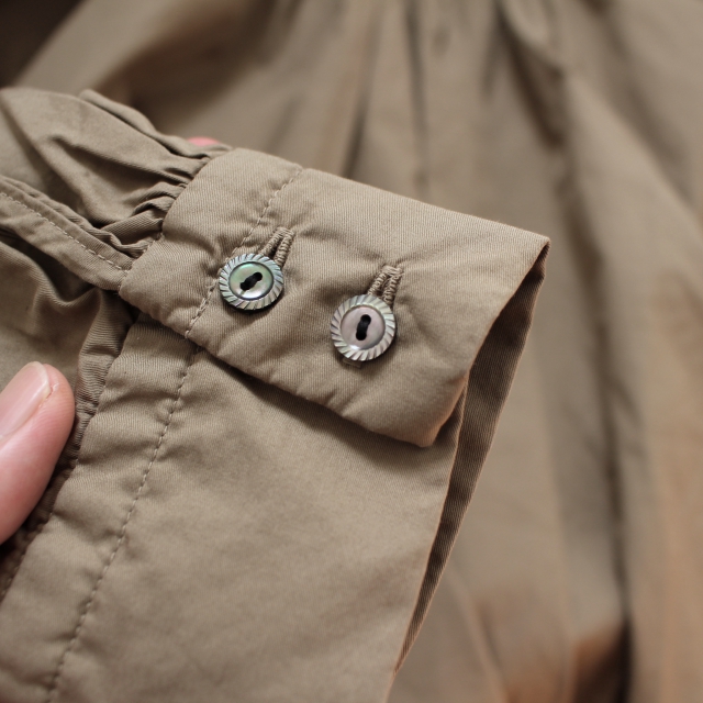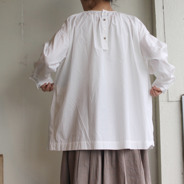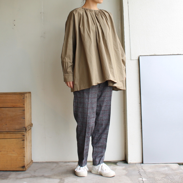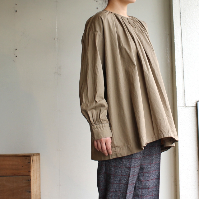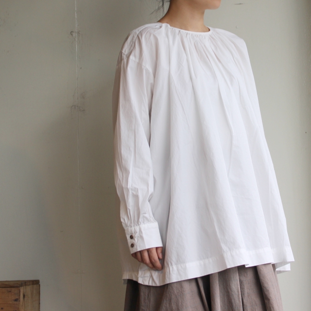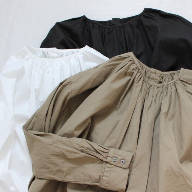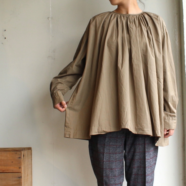 首元はギャザーを入れ、緩やかなボリューム感が魅力となっています。