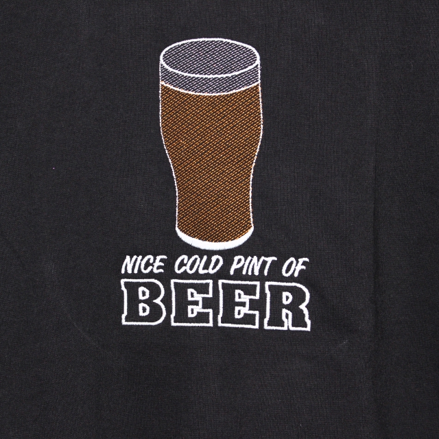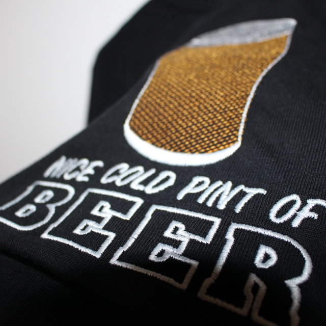 イギリス生産のしっかりした厚みのあるTシャツボディに、インパクトのある刺繍が何とも言えない存在感。