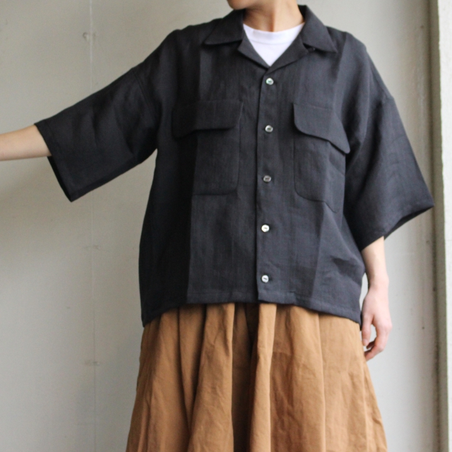 ラミー(苧麻)を100%使用したシャツは、適度な光沢感があり上品な印象に仕上がっています。