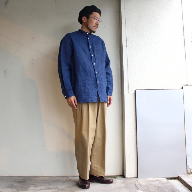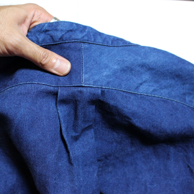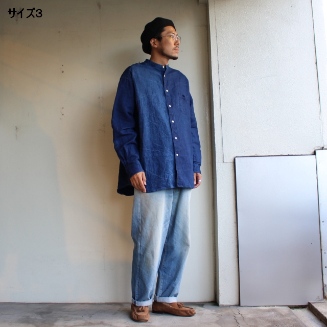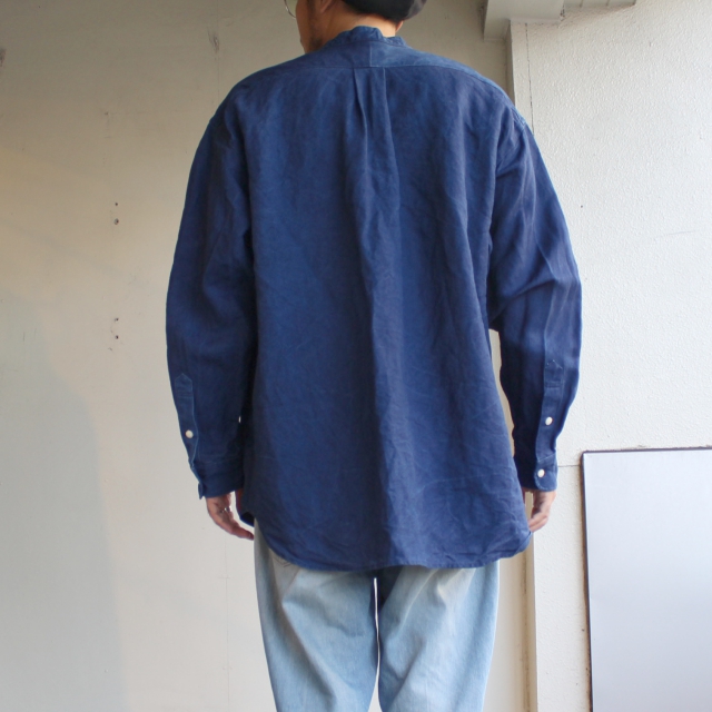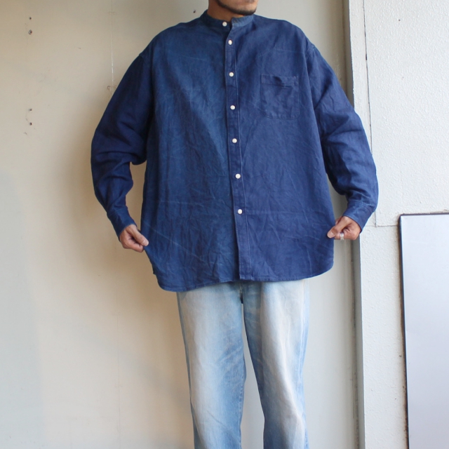 インディゴ染めの風合いと、ゆったりしたシルエットが特徴のシャツです。