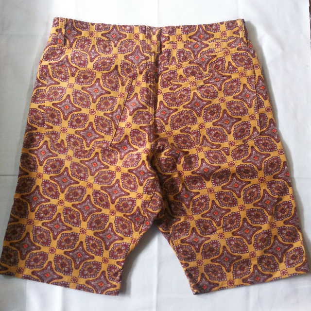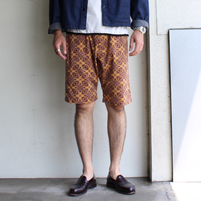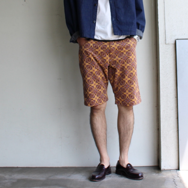 エスニック調の柄をあしらった別珍ショートパンツです。