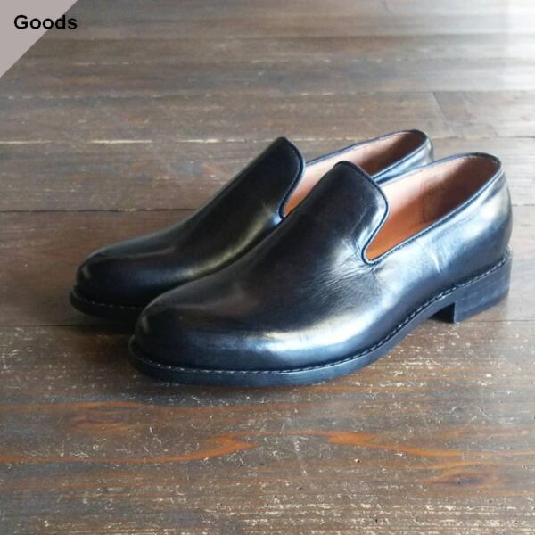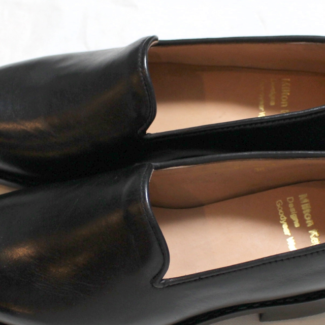 そのインドで製作されるブランド「Milton Keynes」からレザーのスリッポンです。