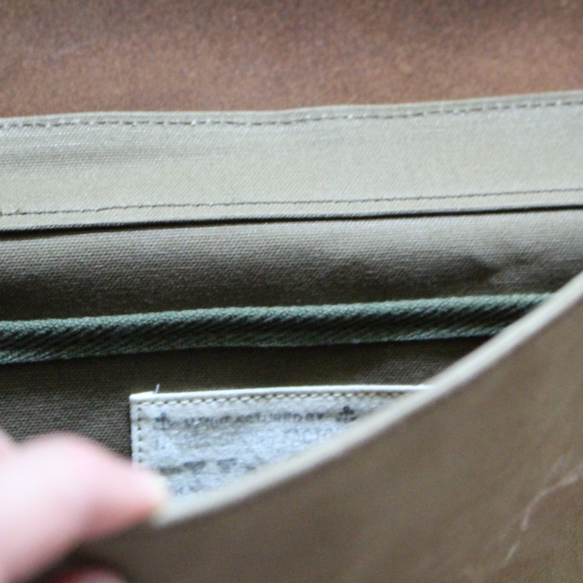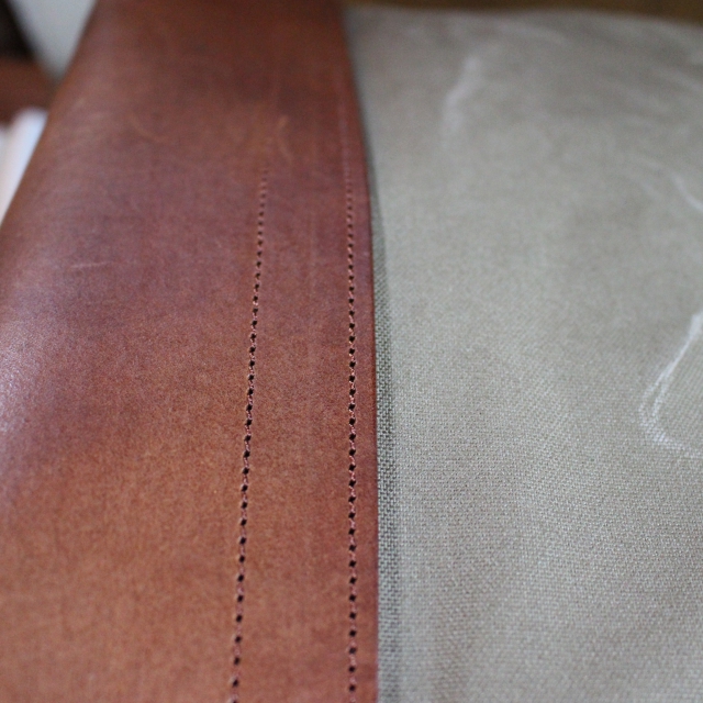 パラフィン(蝋)を配合したオイルワックスを染みこませた 9 号帆布を使用。