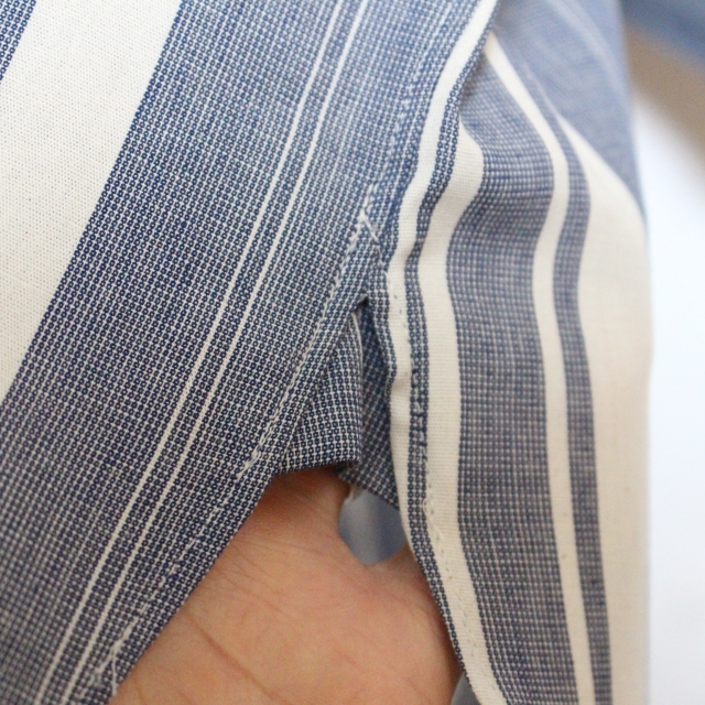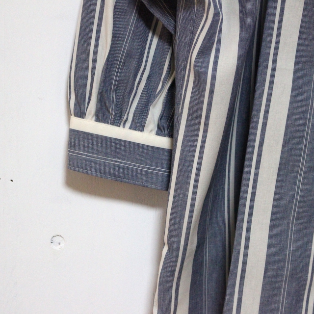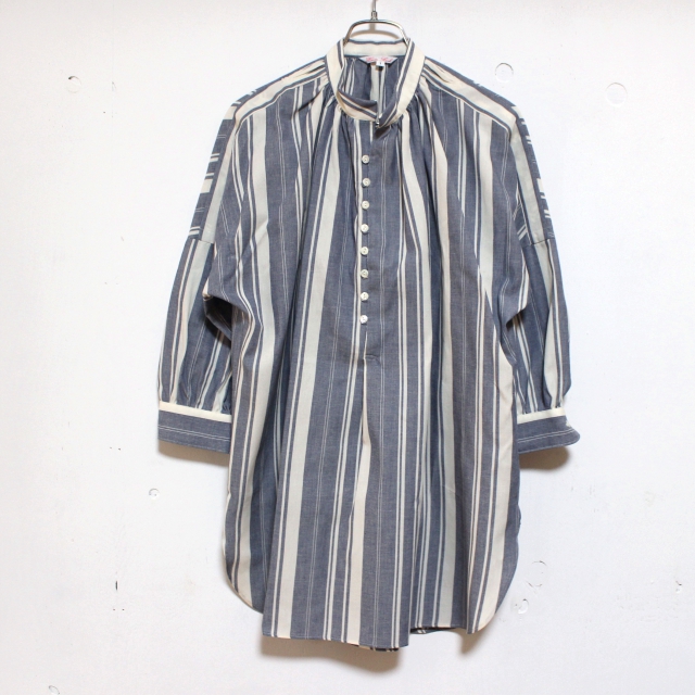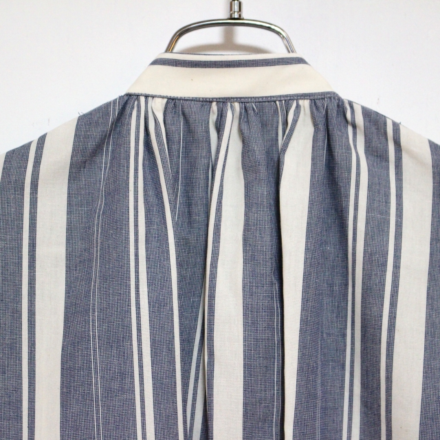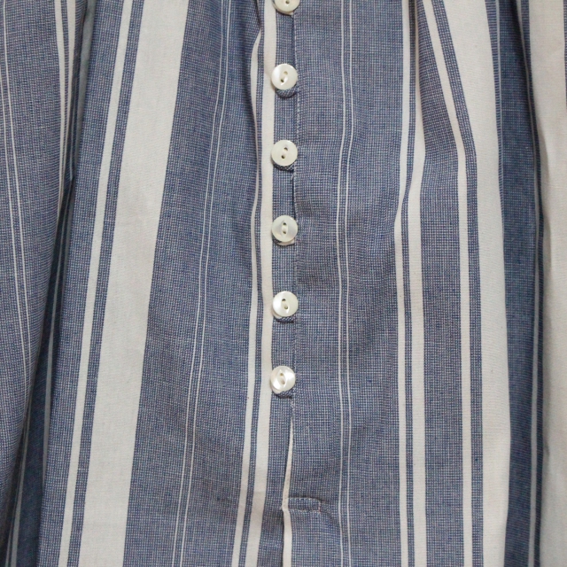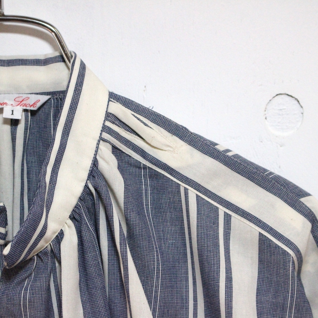 首周りにはギャザーを入れ、ボタンは猫目シェルボタンなど細かい部分もしっかり作られています。