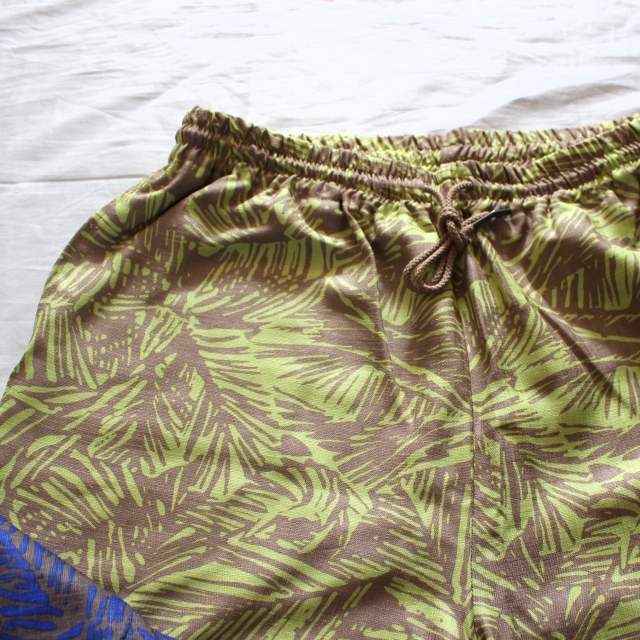 シルエットは股上を深くとり、横幅もゆったり、丈は膝上のサーフショーツをベースにしたシルエットです。