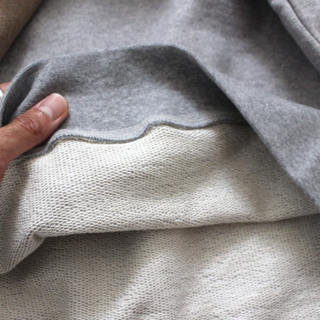 裏起毛ではなく、あえて裏毛にすることで季節も長く着てもらえるようにしています。
