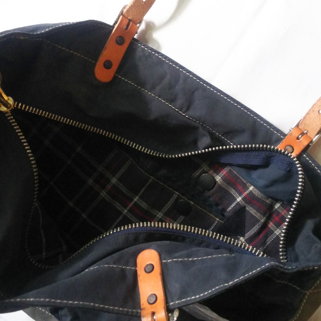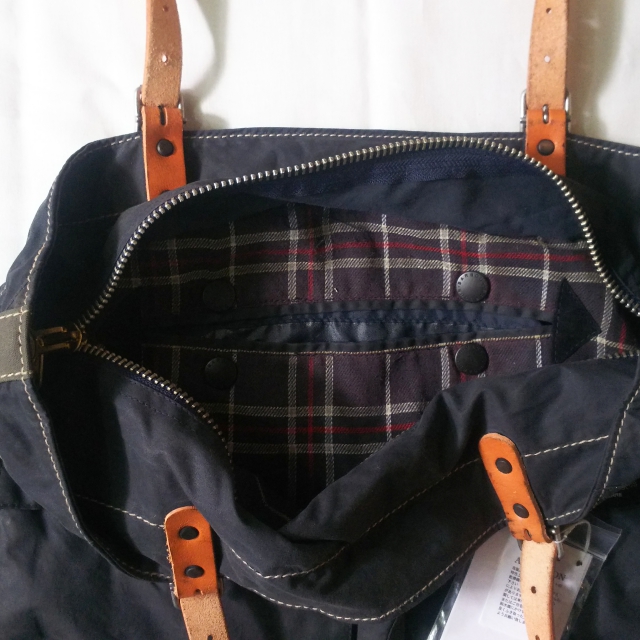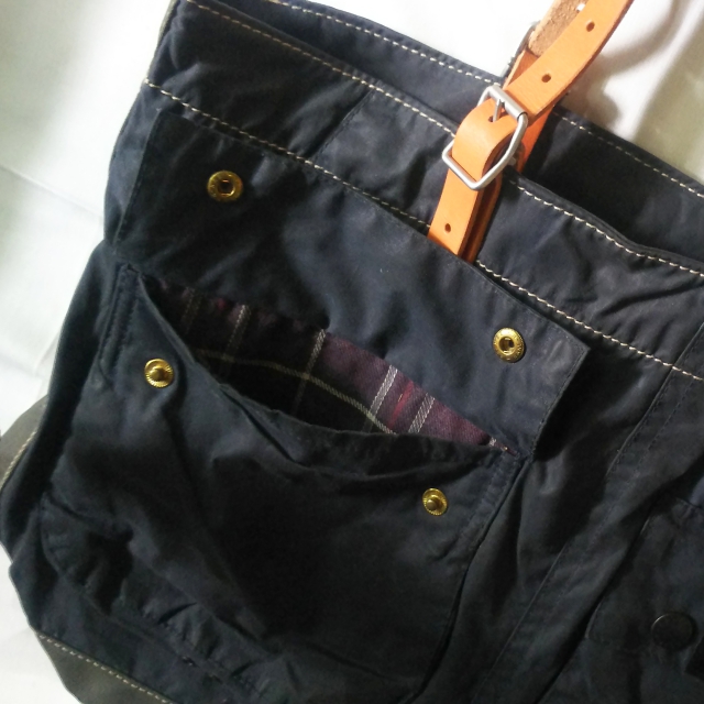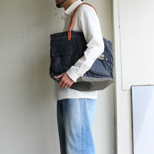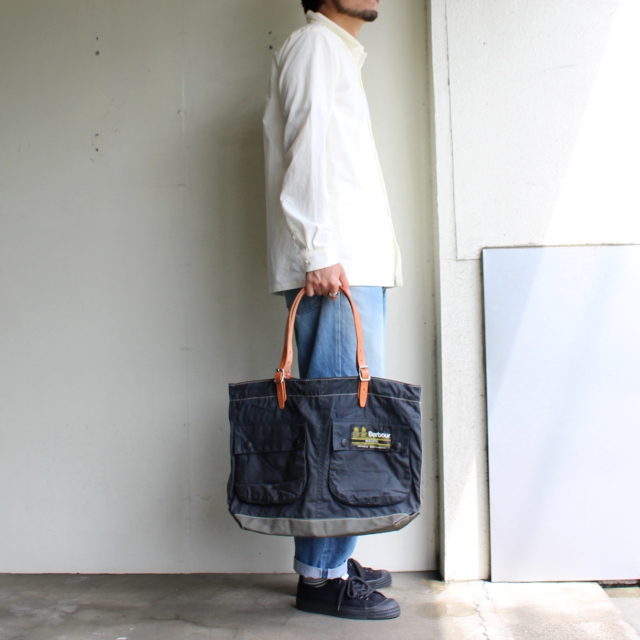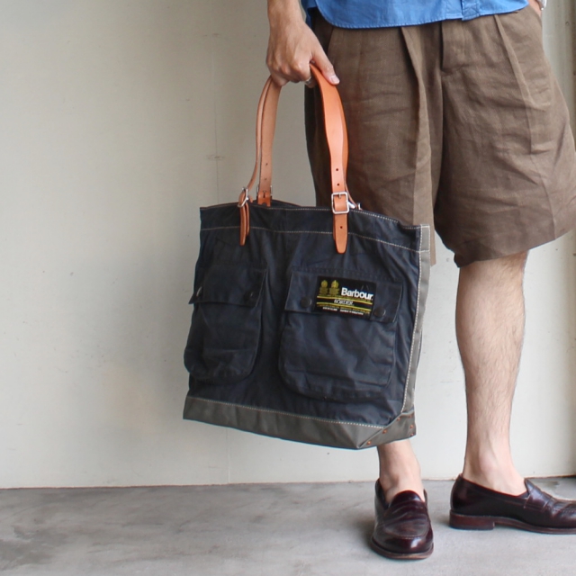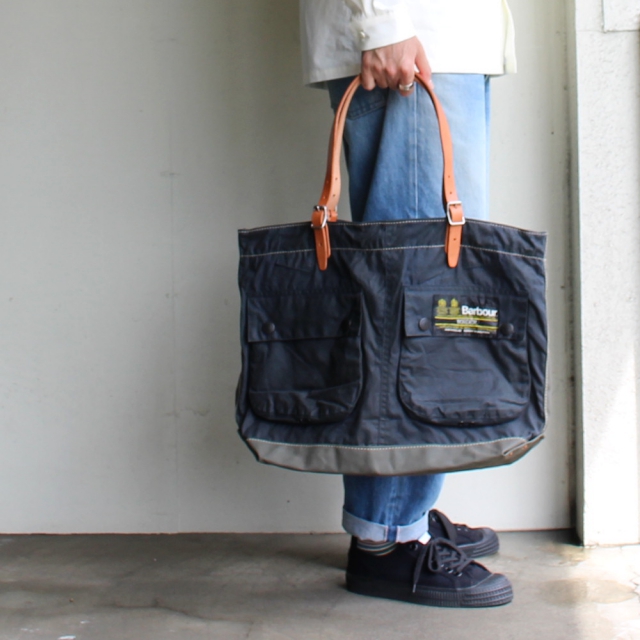 国内リメイクブランドyousedより、バブアーのリメイクトートバッグです。