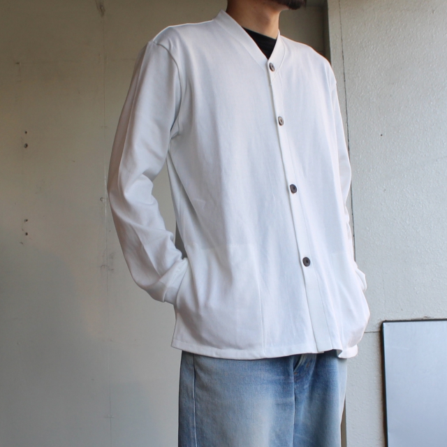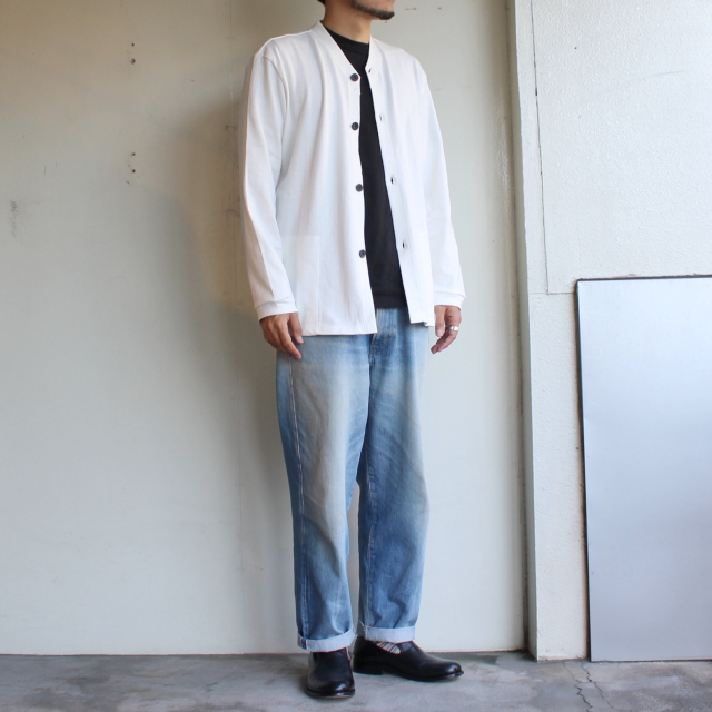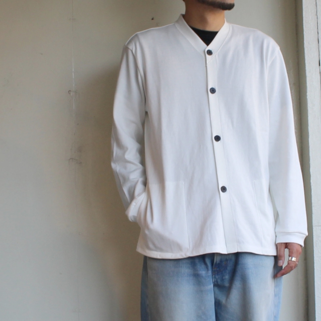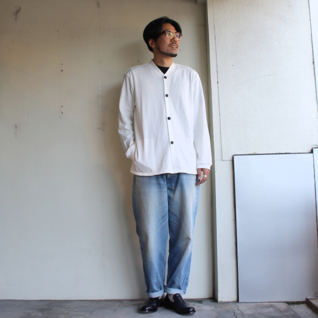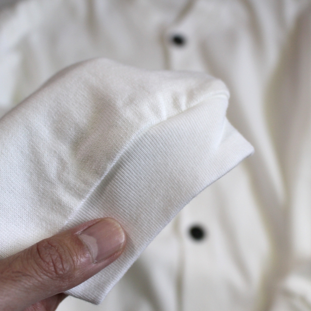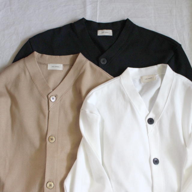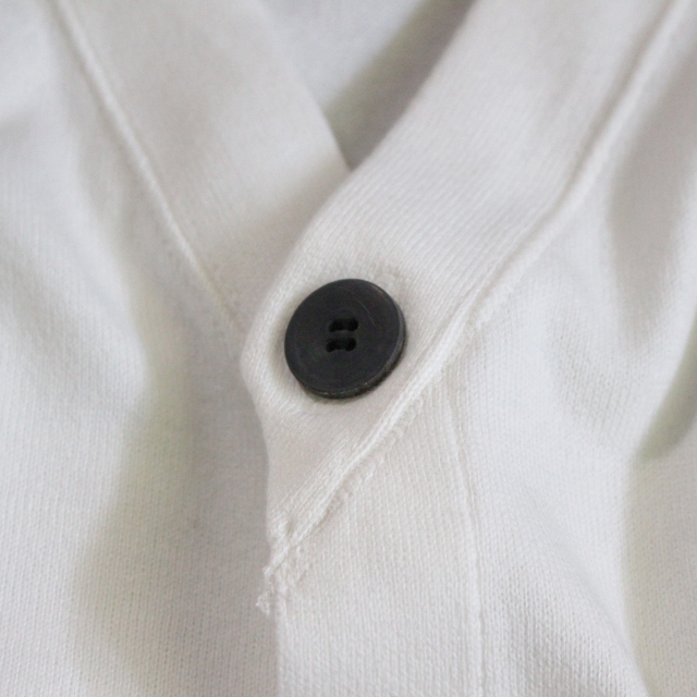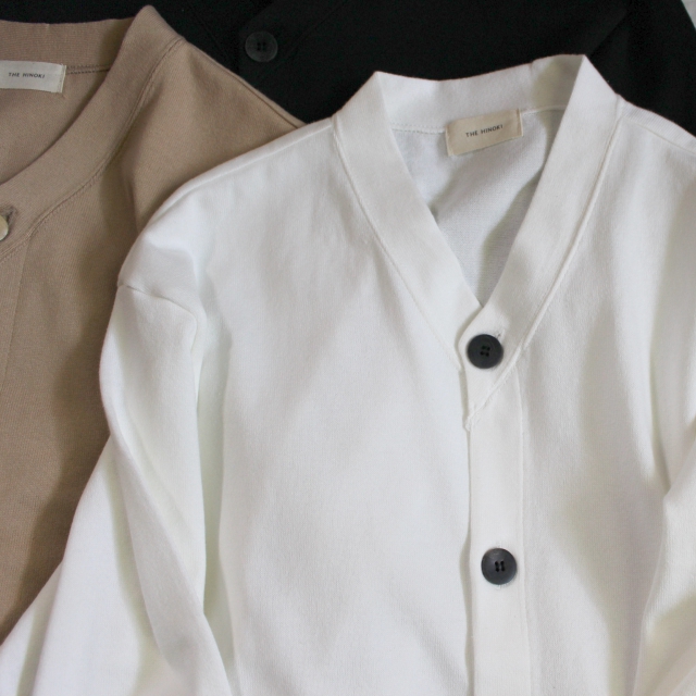 手口には30番手のフライス生地を使用するなど、シンプルながら素材や生地にこだわったカーディガンです。