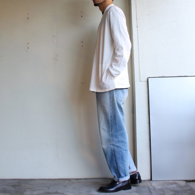 20番双糸の天竺を使用した、ニットのようなしなやかな風合いと厚みのあるカットソー生地。