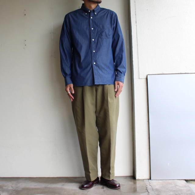 weac.のベーシックシャツより、イタリア老舗ファブリックメーカーALBINI(アルビニ)の生地を使用した限定デニムシャツです。
