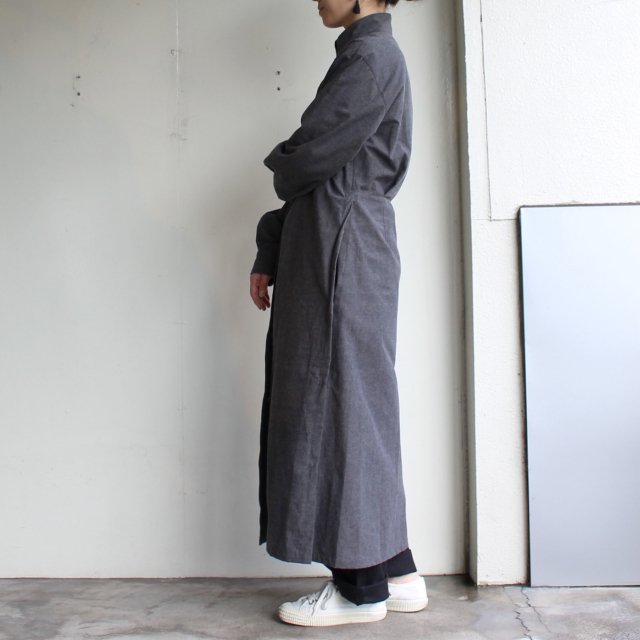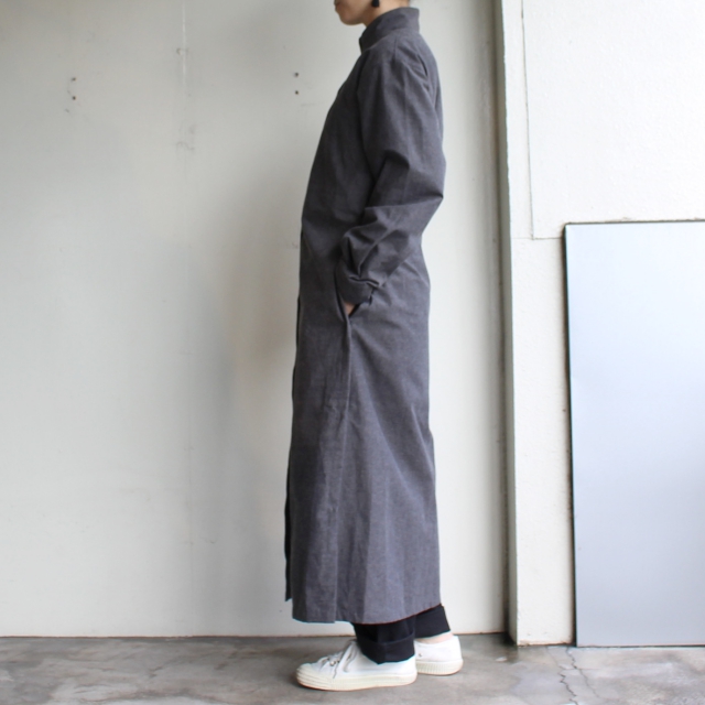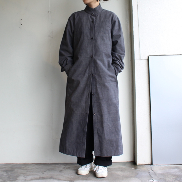ボタンを閉めてドレスとして、開けてボトムとのレイヤードも楽しめます。